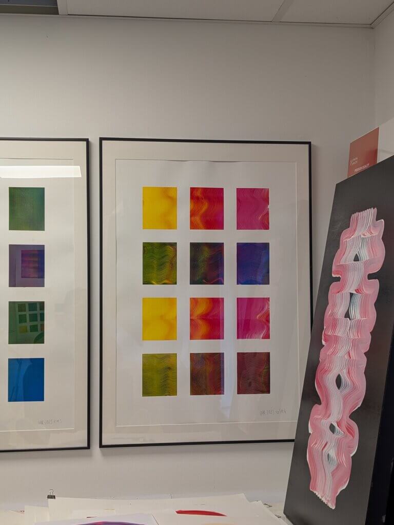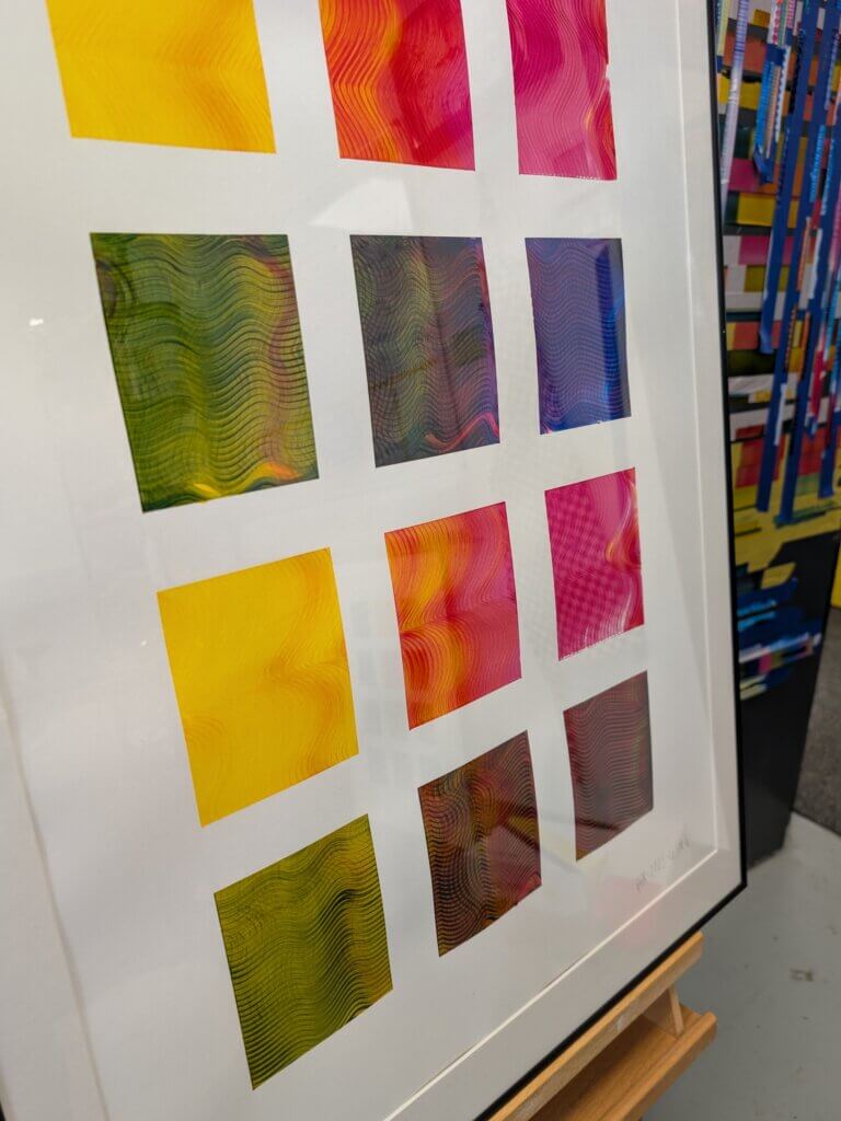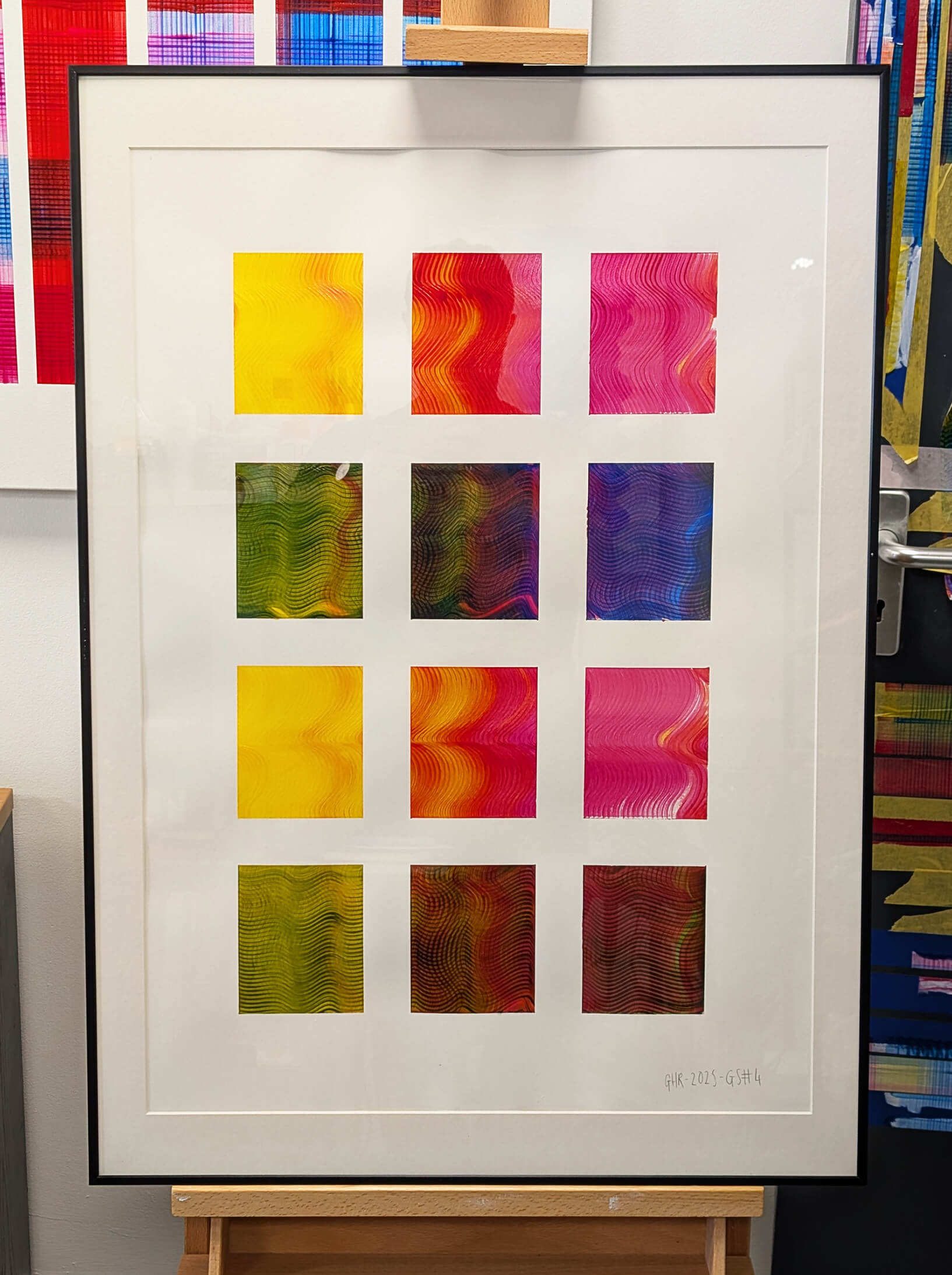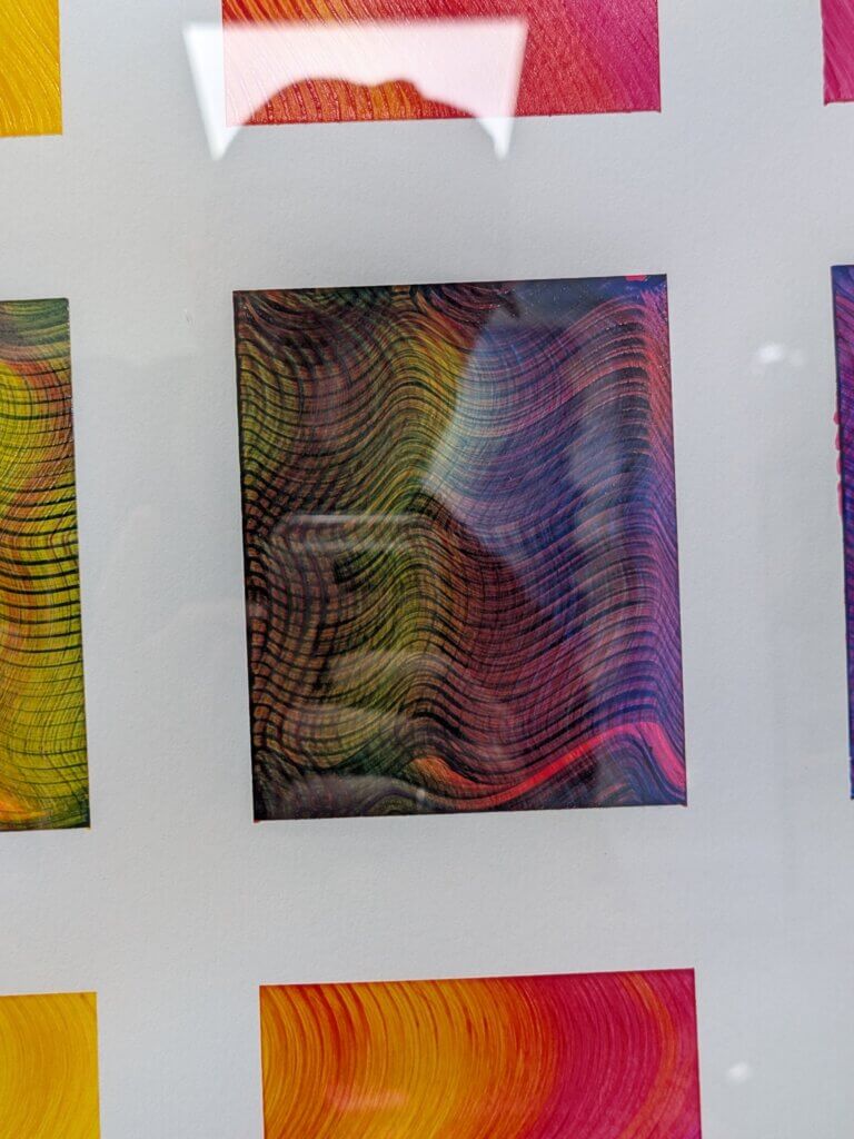 These are exploring the core thing that I find most interesting in creating physical art with code and machines – how the perfect repetition of the machine is then messed up by human ‘interference’. That interference is in how I create the masks, how I put the pigment/medium mix down, how that makes the fluid move, and much more besides. The perfect becomes imperfect, and all the more interesting for it.