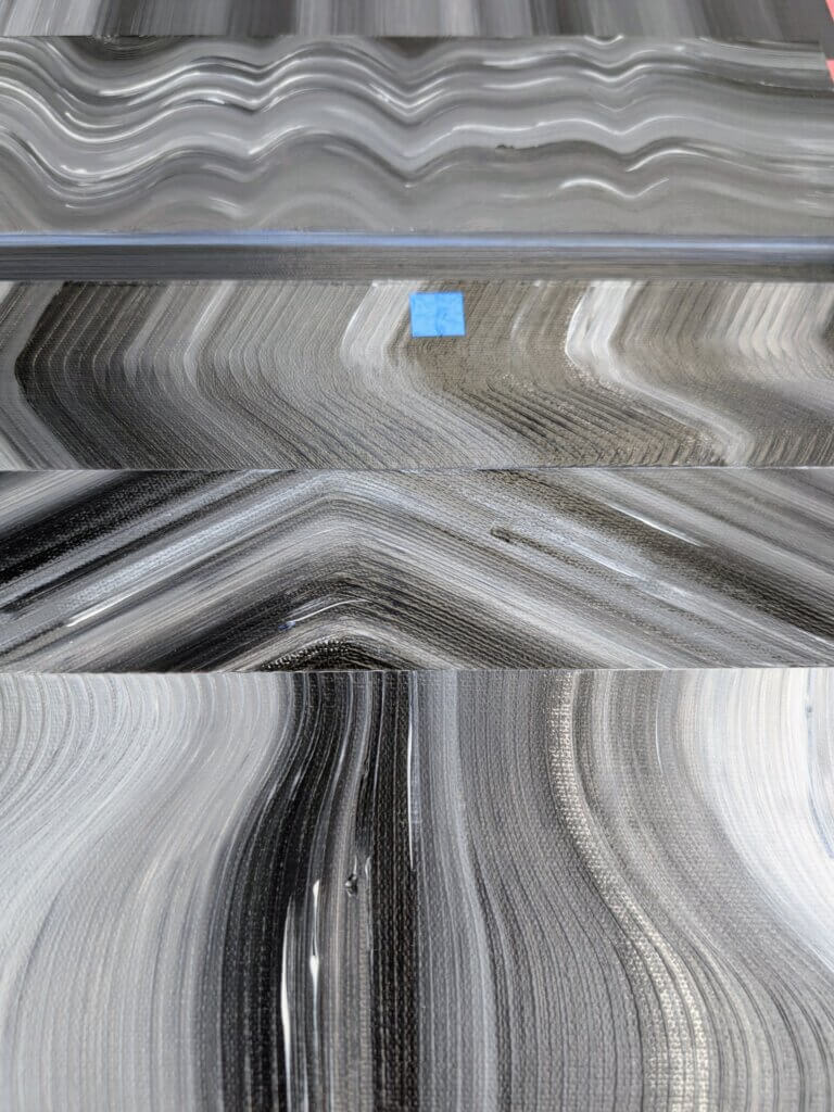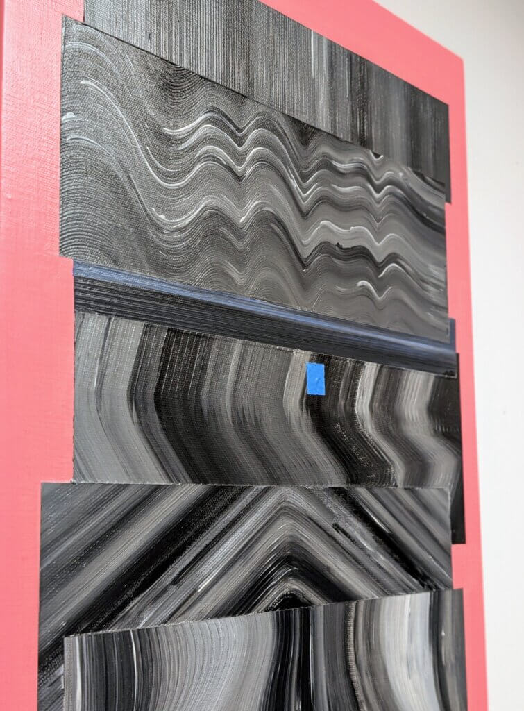 Keeping the colour monochromatic made these waves feel like reflections in liquid metal. The distortion of looking, the false reflections, felt really fitting for examining a self-portrait.