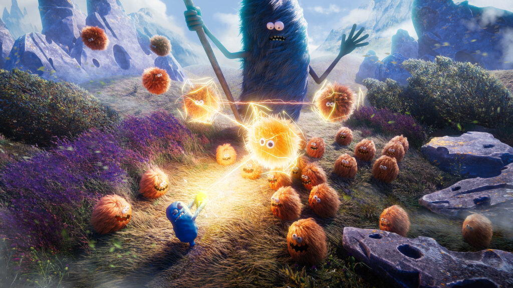 Big Blue and Yellow began life after we worked with Bandai Namco on 11-11: Memories Retold. Once that game was wrapped, they asked us ‘what do you guys want to make next?’.